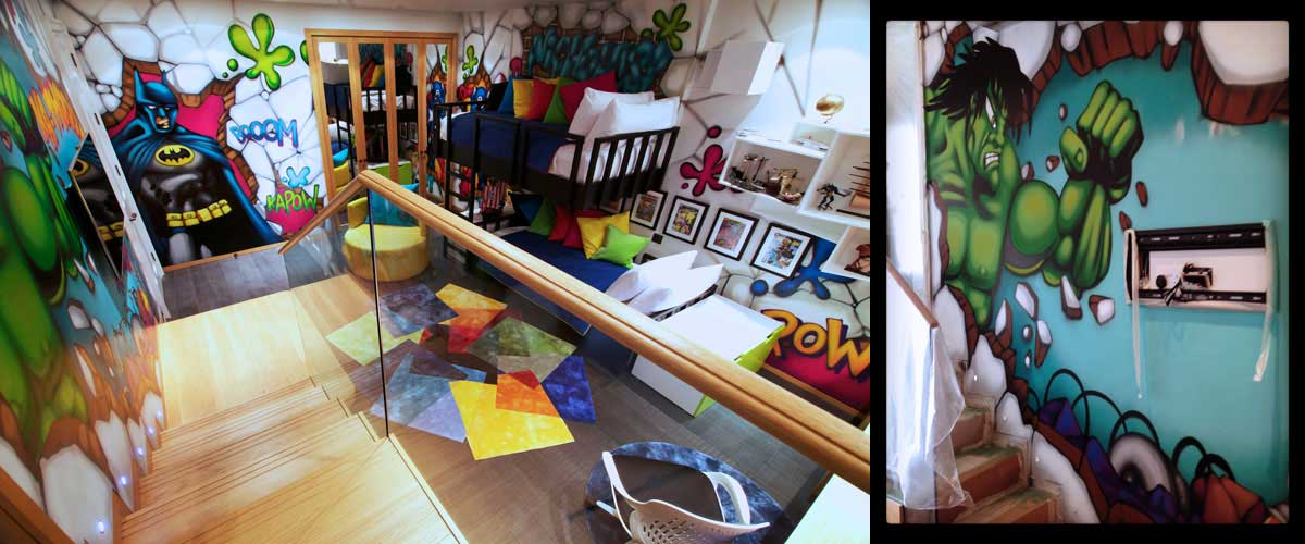 Laura likes to explore the edges of art and product, developing unique installation of Art within a space…her love of art that creates the maximum impact within a space led her to the love of Graffiti Design. Working with various graffiti artists Laura has worked on a number of private commissions that can be viewed on in her portfolio of works.
